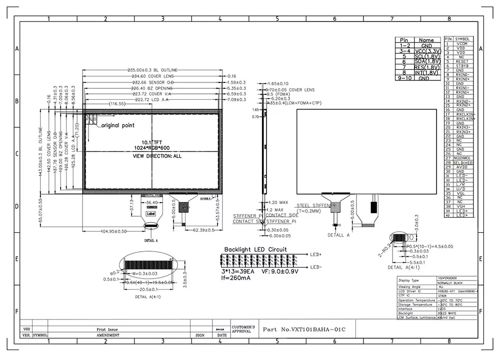 TFT LCD jest rodzajem wyświetlacza ciekłokrystalicznego, który wykorzystuje technologię tranzystorową cienkowarstwowej w celu zwiększenia jakości obrazu, i ma wiele zastosowań w życiu codziennym. Jako profesjonalny producent i dostawca modułu TFT w Chinach sprawia, że moduł Victronix 10,1 cala 1024 × 600 IPS TFT z CTP różni się od innych producentów? Po pierwsze, oferuje typową jasność 420 CD/m², szerokie kąty oglądania 80 ° we wszystkich kierunkach oraz współczynnik kontrastu 800: 1, zapewniając doskonałą czytelność z różnych stron. Po drugie, integruje jednostkę podświetlenia wykorzystującą 39 białych diod LED o typowym okresie życia od 30 000 do 50 000 godzin (do 50% początkowej jasności), zapewniając wyraźną widoczność we wszystkich warunkach oświetlenia. Poza tym obsługuje interfejs 6/8 bit LVDS z kontrolerem HX8282A11+HX8696A i solidny 5-punktowy panelu dotykowy z kontrolerem CTP GT928. Ponadto przechodzi rygorystyczne testy środowiskowe, w tym wstrząs termiczny (-30 ° C ↔ +80 ° C), przechowywanie wilgotności (60 ° C/90% RH) i wibracje mechaniczne, zapewniając, że może działać płynnie w rozszerzonym zakresie temperatur (-20 ° C do +70 ° C).