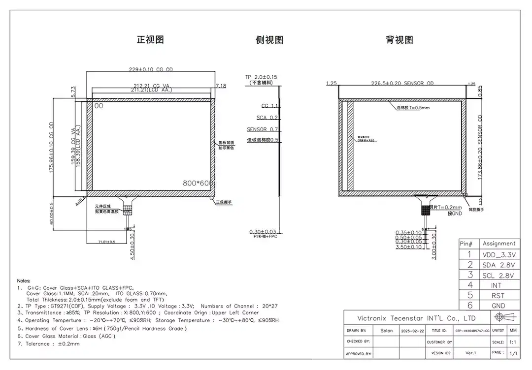 Jakie są konkurencyjne zalety Victronix 10,4 cala USB prognozowanego pojemnościowego ekranu dotykowego w konkurencyjnej sytuacji producentów modułów TFT? Początkowo jego trwałe konstrukcja G+G zapewnia odporność na zarysowania z oceną twardości powierzchniowej ≥6H. Po drugie, ma wysoką szybkość transmisji światła (≥88%), aby zapewnić klientom żywe i wyraźne efekty wizualne. Poza tym ten panel dotykowy przeszedł rygorystyczne testy niezawodności, w tym wysoką temperaturę/wysoką wilgotność przechowywania (60 ° C/90%RH, 96H), przechowywanie wysokiej/niskiej temperatury (-30 ° C i 80 ° C, 120H każdy) oraz cykliczne wstrząsy termiczne (-20 ° C, 70 ° C, 100 cykli). Ponadto ma nie tylko doskonałą wydajność elektryczną z napięciem roboczym od 2,8-3,3 V, niskim prądem roboczym (12m ~ 14,5 mA) i prędkości odpowiedzi od ≤12 ms, ale jest również zbudowane tak, aby wytrzymać trudne warunki z zakresem temperatury roboczej od -20 ℃ do +70 ℃ (≤90% RH) i przechowywanie od -30 ℃ do +80 ℃ (≤90% RH).