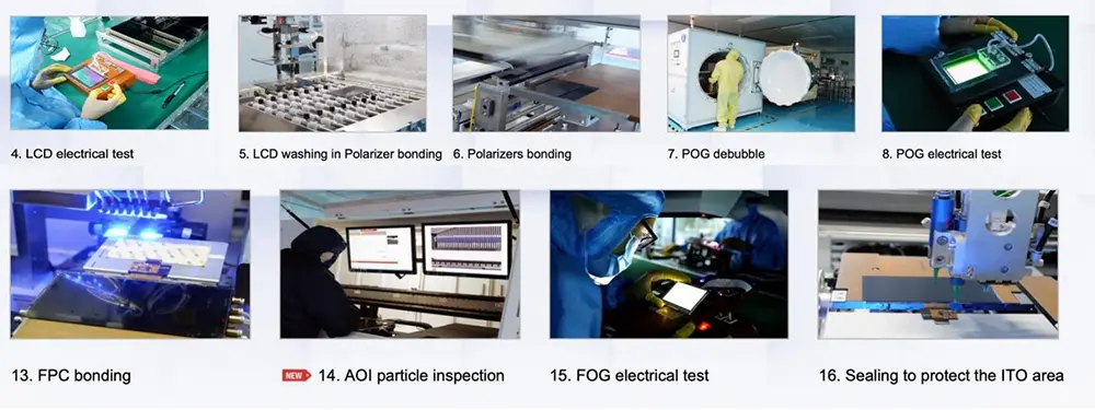 ● Ulepszanie sprzętu do produkcji precyzyjnej: Należy zastosować wysoce precyzyjne systemy czyszczenia podłoża (takie jak technologia czyszczenia plazmowego), aby zmniejszyć ilość pozostałości zanieczyszczeń, wprowadzić sprzęt do automatycznego wyrównywania filtrów barwnych, aby kontrolować dokładność wyrównania w zakresie ±0,5 μm; zoptymalizuj proces wtrysku ciekłych kryształów, aby zmniejszyć powstawanie pęcherzyków.